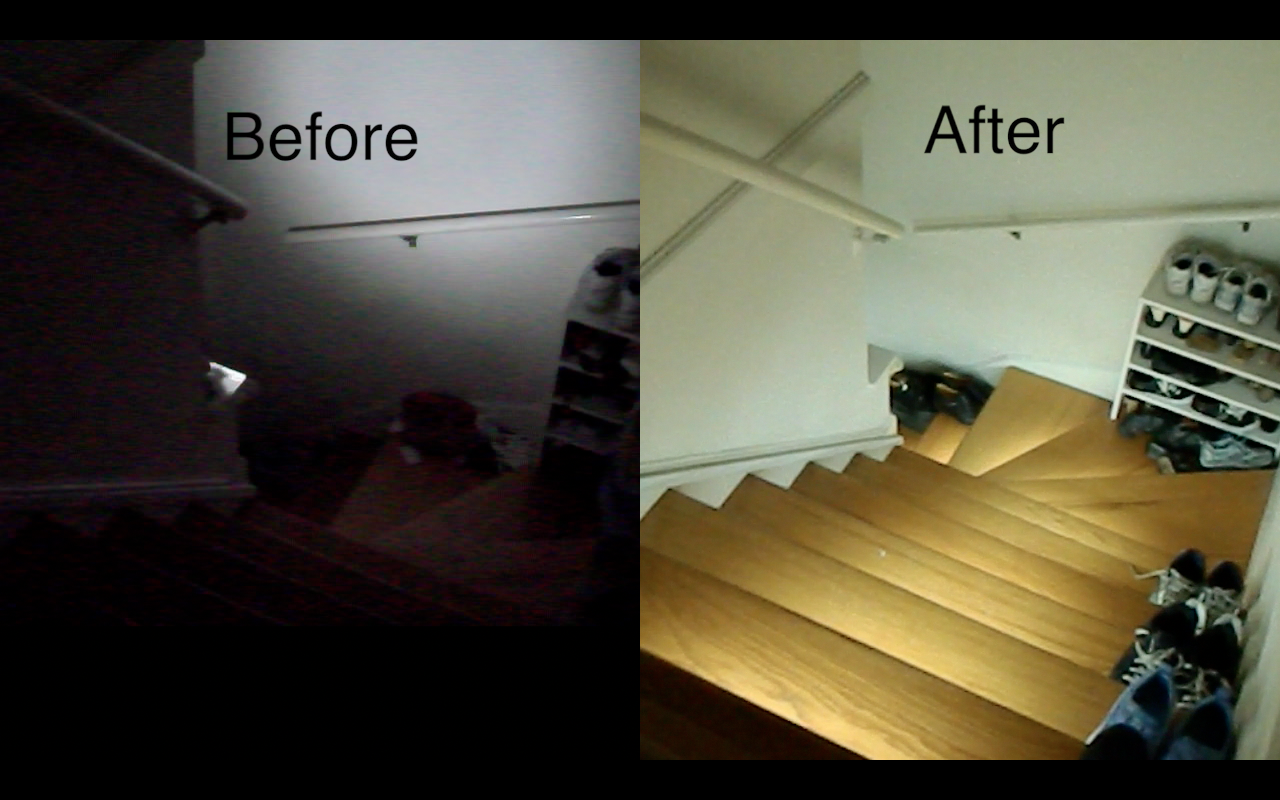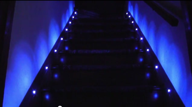 The stairs at night were really dark. It was bad enough that we had to put lights next to it. However, these lights shined in your face and not the stairs. I wanted to light up the actual steps. I really thought the German video was cool, so I aimed for that animation as my goal.
