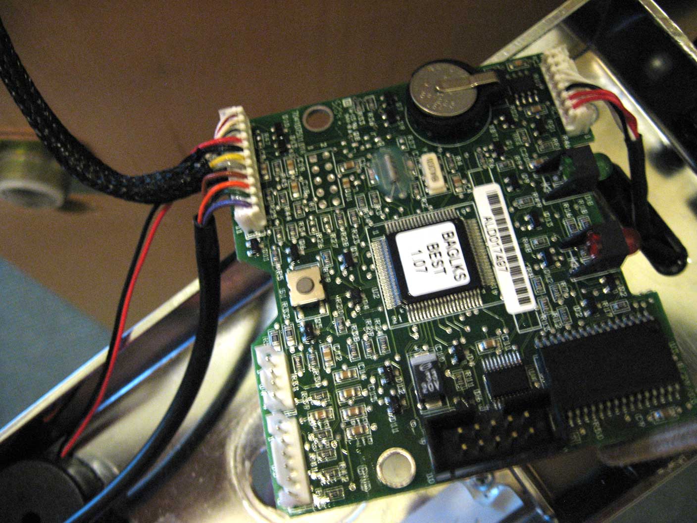 The PCB inside the door lock, featuring four magic ICs. I probably lost power at this stage.