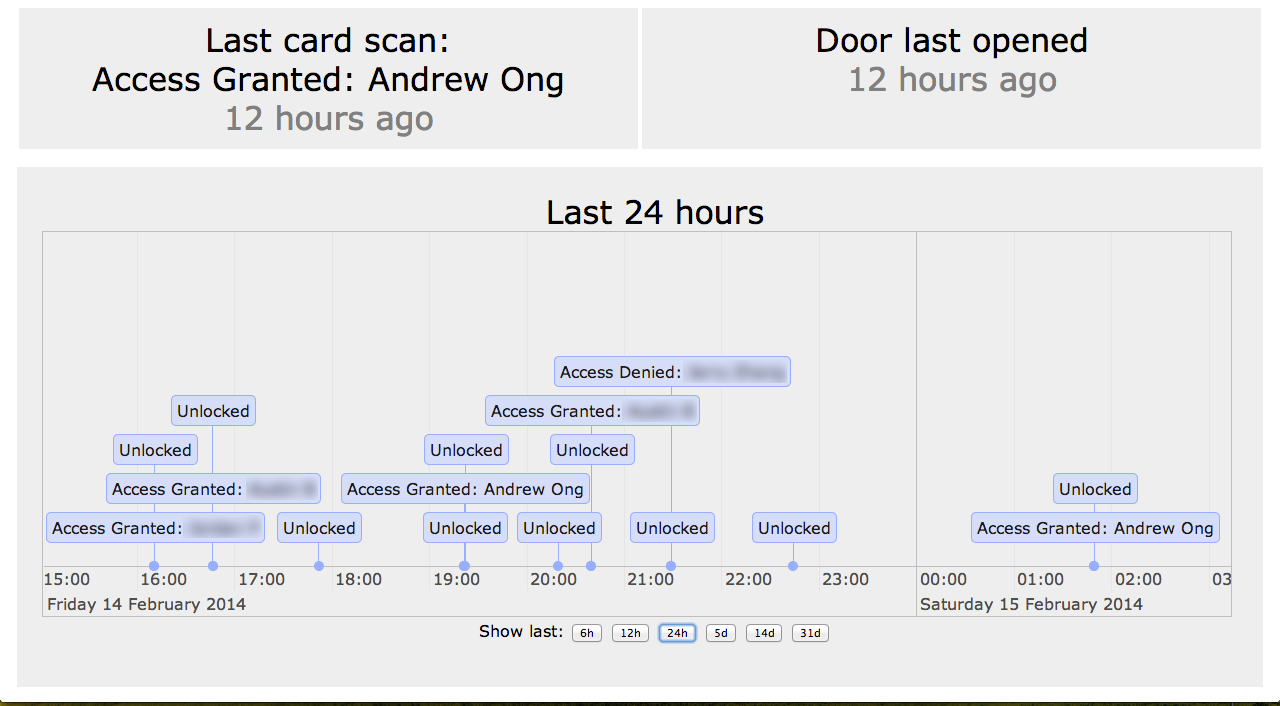 • Report all “access granted/denied” and “door open” events to the Internet.
